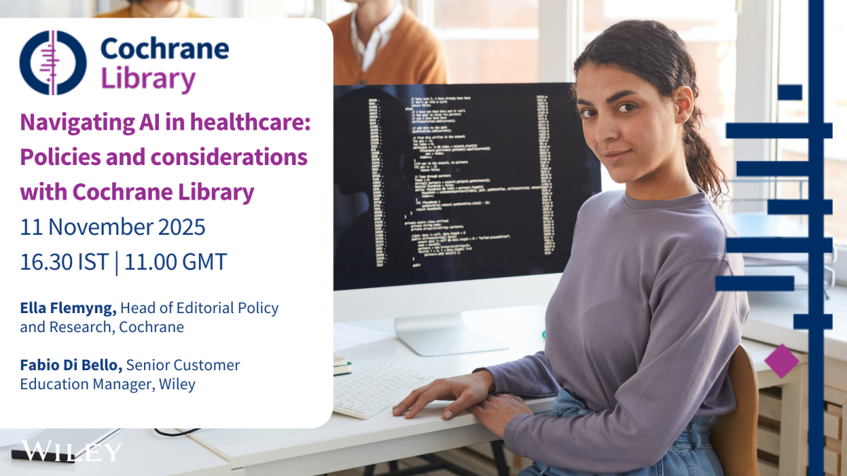 We’re excited to announce a new series of Wiley Webinars in collaboration with the Cochrane Library! 🎓 These free sessions are designed to support researchers, students, and healthcare professionals in strengthening their skills and applying evidence-based practices.